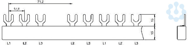 3pol. EV-Phasenschiene 10mm² Gabel, Schritt 17,8mm, 11TE, FI/8LS