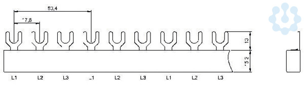 3-polige Eurovario-Phasenschiene, grau Querschnitt: 16mm² Modulbreite: 17,8mm Schrittabstand: 53,4mm Fahnenanzahl: 9 Eindringtiefe: 12mm Phasenfolge: L1,L2, L3,... Länge: 158mm Gabelöffnung: M6 Bauform: E Fabrikatszuordnung: Standard, ABL, Doepke, F&G, Mersen, GE/AEG, Hager, Legrand, Merlin Gerin, Moeller, OEZ, Schneider, Schrack, Siemens, Woehner, Eaton, Noark, Rockwell Anwendung: LS