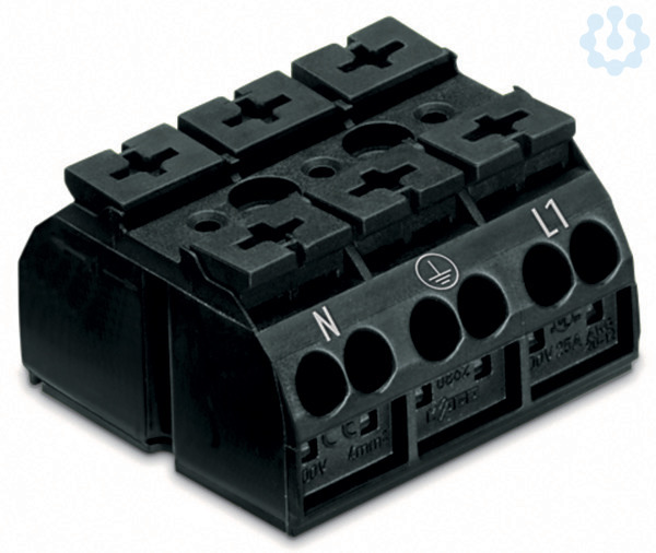 4-Leiter-Geräteanschlussklemme; mit PE-Kontakt; N-PE-L1; 3-polig; für Schraube und Mutter M3; 4 mm²; 4,00 mm²; schwarz