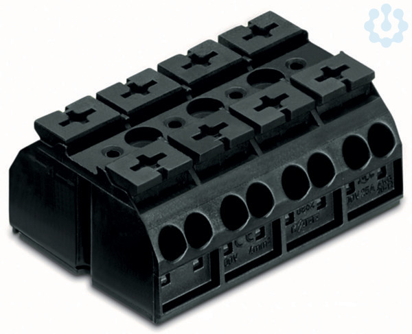 4-Leiter-Geräteanschlussklemme; ohne PE-Kontakt; 4-polig; für Schraube und Mutter M3; 4 mm²; 4,00 mm²; schwarz