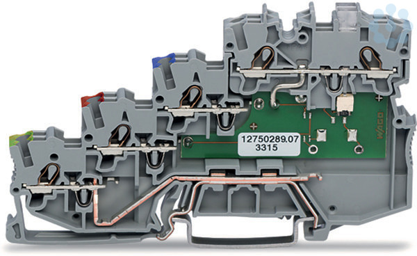 4-Leiter-Initiatorenklemme; LED gelb; für PNP-(plus-)schaltende Initiatoren; mit PE-Anschluss; 1 mm²; Push-in CAGE CLAMP®; 1,00 mm²; grau