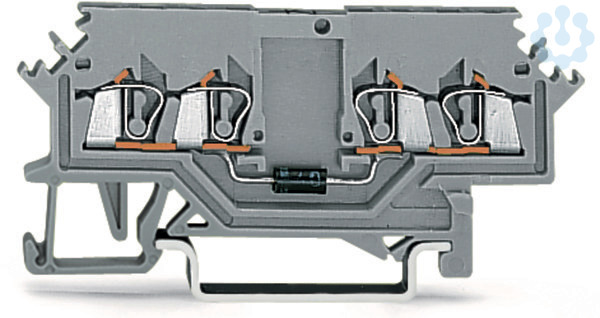 Bauelementklemme; 4 Leiter; mit Diode 1N4007; Anode links; für Tragschiene 35 x 15 und 35 x 7,5; 1,5 mm²; CAGE CLAMP®; 1,50 mm²; grau