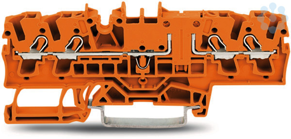 4-Leiter-Durchgangsklemme; 2,5 mm²; mit Prüfmöglichkeit; konturengleich zu 4-Leiter-Trennklemme; seitliche und mittige Beschriftung; für Tragschiene 35 x 15 und 35 x 7,5; Push-in CAGE CLAMP®; 2,50 mm²; orange