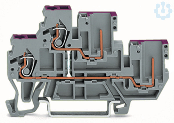 2-Leiter/2-Pin-Doppelstock-Basisklemme; 2-Leiter/2-Pin-Durchgangsklemme; 2,5 mm²; N; intern gebrückt; Leitereinführung violett bedruckt; für Tragschiene 35 x 15 und 35 x 7,5; CAGE CLAMP®; 2,50 mm²; blau