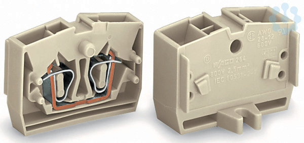 4-Leiter-Endklemme; ohne Drücker; für Anwendungen Ex e II geeignet; mit Befestigungsflansch; 1-polig; für Schraub- u.ä. Befestigungsarten; Befestigungsloch Ø 3,2 mm; 2,5 mm²; CAGE CLAMP®; 2,50 mm²; lichtgrau