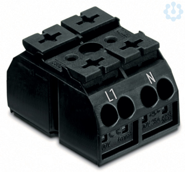 4-Leiter-Geräteanschlussklemme; ohne PE-Kontakt; L1-N; 2-polig; 1 Rastfuß pro Pol; 4 mm²; 4,00 mm²; schwarz