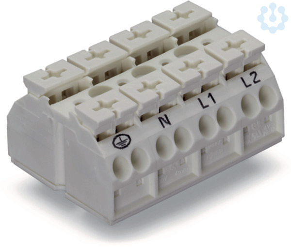 4-Leiter-Geräteanschlussklemme; mit PE-Kontakt; PE-N-L1-L2; 4-polig; 4 mm²; 4,00 mm²; weiß
