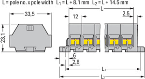 4-Leiter-Klemmenleiste 2-polig grau mit Befestigungsflansch