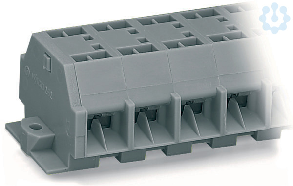4-Leiter-Klemmenleiste; ohne Drücker; mit Befestigungsflanschen; 2-polig; für Schraub- u.ä. Befestigungsarten; Befestigungsloch Ø 3,2 mm; 4 mm²; CAGE CLAMP®; 4,00 mm²; grau