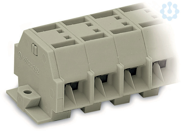 4-Leiter-Klemmenleiste; ohne Drücker; für Anwendungen Ex e II geeignet; mit Befestigungsflanschen; 7-polig; für Schraub- u.ä. Befestigungsarten; Befestigungsloch Ø 3,2 mm; 4 mm²; CAGE CLAMP®; 4,00 mm²; lichtgrau