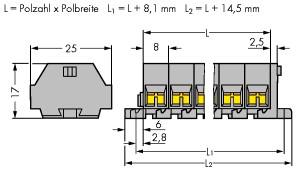 4-Leiter-Klemmenleiste 9pol. grau mit Befestigungsflansch