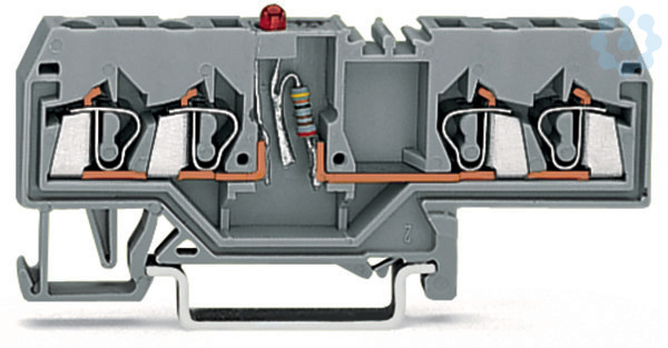 Bauelementklemme; 4 Leiter; LED rot; DC 24 V; für Tragschiene 35 x 15 und 35 x 7,5; 2,5 mm²; CAGE CLAMP®; 2,50 mm²; grau