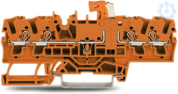 4-Leiter-Trenn- und Messklemme; mit Drücker; mit Prüfmöglichkeit; Trennmesserhalter orange; für Tragschiene 35 x 15 und 35 x 7,5; 2,5 mm²; Push-in CAGE CLAMP®; 2,50 mm²; orange