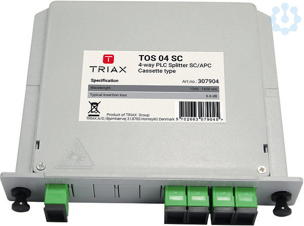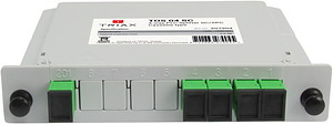 Optischer 4-fach Verteiler mit SC/APC Anschlüssen. Für Singlemode-Systeme.