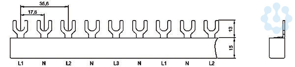 4pol. EV-Phasenschiene 10mm² Gabel, Schritt 17,8mm, 18TE