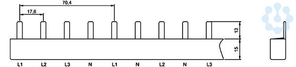 4pol. EV-Sammelschiene 10mm² Stift, Schritt 17,6mm, 12TE