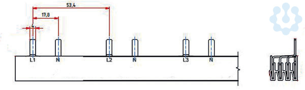 4-polige Phasenschiene, grau Querschnitt: 10mm² Modulbreite: 17,8mm Schrittabstand: 160,2mm Fahnenanzahl: 36 Eindringtiefe: 12mm Phasenfolge: L1,N,H1,L2,N,H1,L3,N,H1, Länge: 950mm Stegbreite: 4mm Fabrikatszuordnung: Standard, ABL, Doepke, F&G, Mersen, GE/AEG, Hager, Legrand, Merlin Gerin, Moeller, OEZ, Schneider, Schrack, Siemens, Woehner, Eaton, Noark, Rockwell Bauform: L Anwendung: LS, AFDD (Siemens) Passende Endkappe: A2 (diese ist separat zu bestellen)