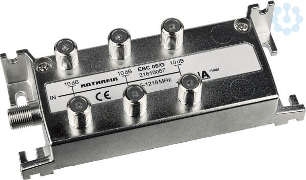 6fach-Verteiler, 10,5 dB, 5-1218 MHz, F-Connector, Trennkondensatoren an Ein- und Ausgaengen, Schirmungsklasse A gem. CENELEC EN 50083-2, Vodafone- KDG-Freigabe