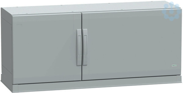 Polyestergehäuse mit offenem Boden. Dach geschlossen. zwei demontierbare Seitenwände. Verriegelungssystem mit Griff und 5mm-Doppelbarteinsatz. Türöffnung 120°. Sockelrahmen am Boden des Gehäuses. Abmessung (HxBxT) 1000x1000x420 mm. IK Schutzart (Stoßfestigkeit) IK10 bei Volltüren. IP-Schutzart (Berührungsschutz, Staub, Wasser) IP54 gemäß IEC 60529. Komplett isolieren für Baugruppen der Klasse II gemäß IEC 64139-1.