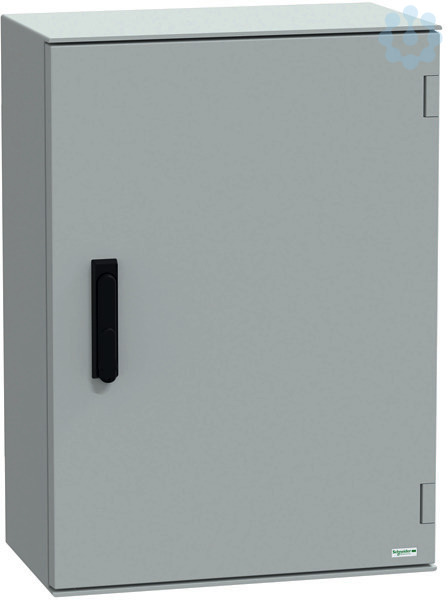 Thalassa PLM Wandmontage Polyestergehäuse Monoblock. 747x 536x 300 mm. Integriertes Regendach, Korpus einteilig geformt mit Montage-Kerben auf der Rückseite. Ohne Montageplatte. 2 Schlösser (3-Punkte-Schloss, Griff mit 1242E Schlüsselschloss). Zugängliche Vorderseite. Polyester verstärkt mit Glasfaser. Grau RAL 7035. IP66, IK10, NEMA (13,4X) 960°C Feuerbeständigkeit.