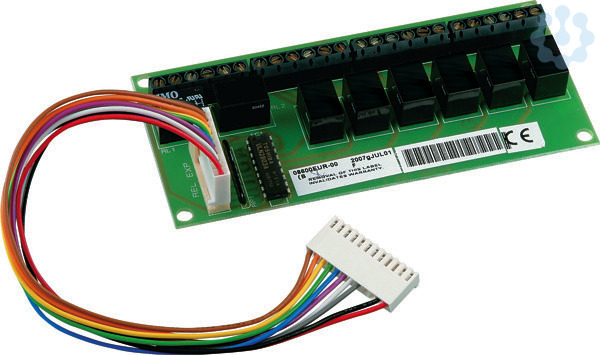 Die 8-fach Relaisplatine ist ein Erweiterungsbaustein für die Terxon SX und die Terxon MX. Der Alarmanlage stehen damit 8 leistungsstarke Relais-Schaltausgänge zur Verfügung. Auf der Hauptplatine der Terxon SX befinden sich 3 Transistor-Schaltausgänge (mit max. 0,5 A Schaltleistung), bei der Terxon MX sind es 1 Transistorausgang und 2 Relais-Schaltausgänge. Diese Ausgänge können bei einem bestimmten Ereignis (Alarm, Feuer, Überfall) aktiviert werden. Ebenfalls auf der Platine vorhanden sind 8 "zusätzliche" Transistorausgänge mit einer maximalen Schaltleistung von jeweils 0,05 A. Diese "zusätzlichen" Transistorausgänge werden durch das Relaismodul belegt. Anstelle von 8 x 0,05 A stehen Ihnen mit dieser Platine 3 A pro Relais zur Verfügung. Dies vervielfältigt Ihre Möglichkeiten, Ausgänge zu definieren. Die Verdrahtung erfolgt über NO oder NC Kontakte.