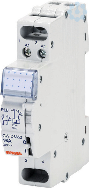 Stromstossschalter (Fernschalter) nach EN 60669-2-2 als Reiheneinbaugeraet. Die maximalen Anschlussquerschnitte fuer die Kontakte sind feindraehtig 6 qmm / massiv 10 qmm und fuer die Spulenanschluesse 2,5 qmm. Kombinierbar mit einem Hilfskontakten oder einer Zentralsteuerung.