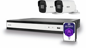 Im Set enthalten: ein 4-Kanal-PoE-Netzwerkrekorder inkl. eingebauter 1-TB-Festplatte für eine mehrwöchige Non-Stop-Aufzeichnung, 2 PoE-fähige WLAN Mini Tube-Kameras (2 MPx), 3 Netzteile und Anschlusskabel.