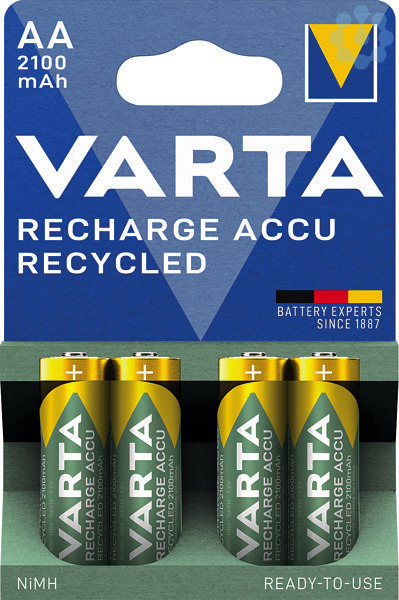 Der VARTA RECHARGE ACCU Recycled AAA mit 2100mAh Kapazität besteht zu 11 Prozent aus recyceltem Material und ist Ready to Use für die sofortige Nutzung direkt aus der Packung. Die umweltfreundlichen Akkus sind mit allen Ladegeräten und Geräten mit hohem Stromverbrauch wie Digitalkameras, Spielzeug, Taschenlampen und Gamecontrollern kompatibel. Der nachhaltige Akku in hoher Qualität ist hunderte Male ohne Memory-Effekt wiederaufladbar und hat eine sehr geringe Selbstentladung.