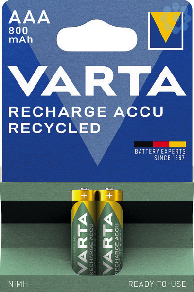 Der VARTA RECHARGE ACCU Recycled AAA mit 800mAh Kapazität besteht zu 11 Prozent aus recyceltem Material und ist Ready to Use für die sofortige Nutzung direkt aus der Packung. Die umweltfreundlichen Akkus sind mit allen Ladegeräten und Geräten mit hohem Stromverbrauch wie Digitalkameras, Spielzeug, Taschenlampen und Gamecontrollern kompatibel. Der nachhaltige Akku in hoher Qualität ist hunderte Male ohne Memory-Effekt wiederaufladbar und hat eine sehr geringe Selbstentladung.