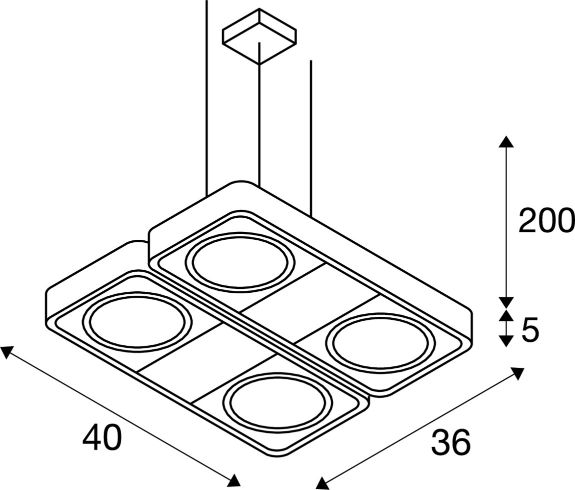 Passend zum Grunddesign der AIXLIGHT R Serie bieten wir mit der AIXLIGHT R2 SQUARE, wahlweise verfügbar in schwarzer, weißer oder silbergrauer Gehäusefarbe, eine Hochvolt Pendelleuchte zur Aufnahme vierer Hochvoltlampen des Typs ES111. Die Lampenhalter sind kardanisch schwenkbar, was die individuelle Ausrichtung der Lichtkegel garantiert. AIXLIGHT R2 SQUARE ist fertig für den direkten Anschluss an 230V Netzspannung.