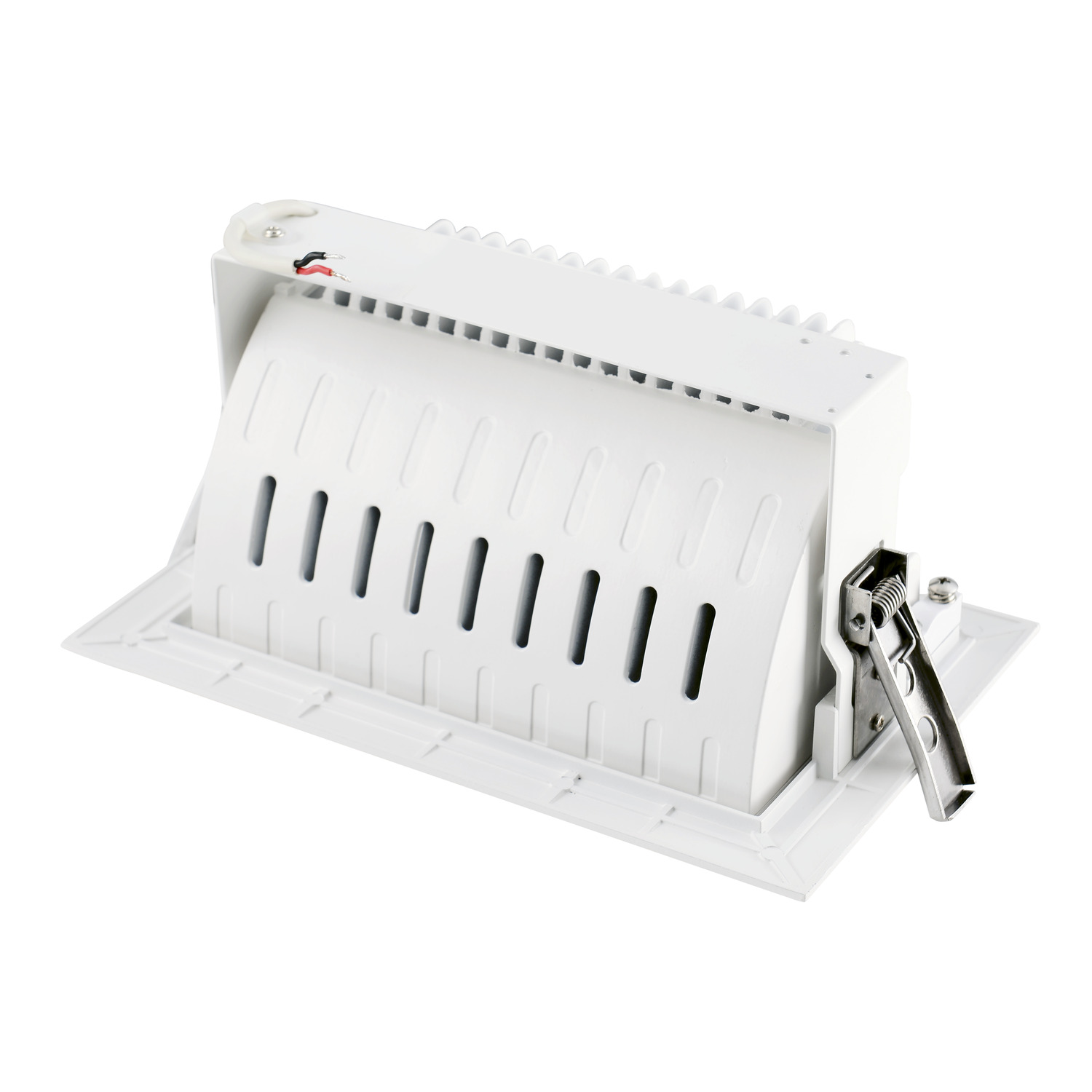 Die ALAMEA Deckeneinbauleuchte für gewerbliche Anwendungen und solche mit hohen Anforderungen an klare Lichteigenschaften. Verfügbar in den Gehäusefarben weiß und schwarz ist die ALAMEA mit einer leistungsstarken 35 Watt LED ausgestattet. Der in zwei Lichtfarben erhältliche LED-Einsatz ist teleskopisch schwenkbar, um somit flexibel auszurichten. Zum Betrieb der Einbauleuchte wird ein passender LED Konstantstromtreiber benötigt. Diese Leuchte hat eine eingebautes LED Modul.