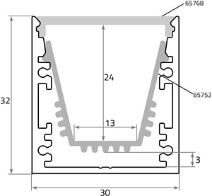 Alu-Trägerprofil zur Aufnahme von Reflektor-Aluprofil für die Innenanwendung Material: Aluminium eloxiert LxBxH in mm: 2.000 x 30 x 32 Lieferhinweis: Lieferung ohne Zubehör - bitte separat bestellen