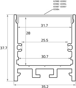 Als Pendel- oder Anbauleuchte verwendbar, in weiß (RAL9016) Innenmaß für Strips bis 30 mm Breite für die Innenanwendung Material: Aluminium eloxiert LxBxH in mm: 2.000 x 35 x 37,5 Lieferhinweis: Lieferung ohne Zubehör - bitte separat bestellen