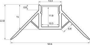 Alu-Unterputzprofil für direkte Beleuchtung Innenmaß für Strips bis 10 mm Breite für die Innenanwendung Material: Aluminium eloxiert LxBxH in mm: 2.000 x 50,6 x 22,8 Lieferhinweis: Lieferung ohne Zubehör - bitte separat bestellen