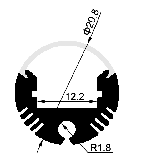 Alu-Rundprofil Innenmaß für Strips bis 12,2 mm Breite für die Innenanwendung Material: Aluminium eloxiert LxBxH in mm: 2.000 x 20,8 x 14,3 (mit Abdeckung 20,8 mm Durchmesser) Lieferhinweis: Lieferung ohne Zubehör - bitte separat bestellen