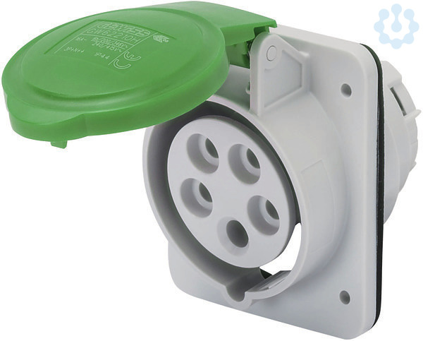 Anbausteckdose fuer industrielle Anwendungen gemaess IEC 60 309 (EN 60 309) Neigung 10° vernickelte Kontakte, Metallteile aus Edelstahl, Kunststoffteile halogenfrei gemaess EN 50 267-2-2, Anschlusstechnik: Schraubklemme, Anschlussquerschnitt 2,5 - 6 mm² feindraehtig / 2,5 - 10 mm² ein- oder mehrdraehtig, , UV Bestaendig, Stossfestigkeit IK09