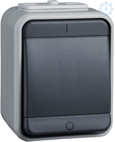 Ausschalter 2-polig, 10 A 250V AC. Farbe: licht-/basaltgrau, für Aufputzmontage. Schutzart IP 44, mit zwei Leitungseinführungen, Steckklemmen: Klemmbereich für Informationsleitungen ab Leitungsdurchmesser 0,5mm, für Kupferleiter 1,5 mm und 2,5 mm.