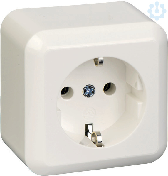 Steckdose 1-fach, 16 A 250V AC, Farbe reinweiß, Für Aufputzmontage, Schutzart IP 20, mit Grundplatte, für Montage auf brennbarem Untergrund geeignet. Steckklemmen Klemmbereich für Kupferleiter 1,5 mm² und 2,5 mm², Verbindungsklemmen nach VDE 0620.