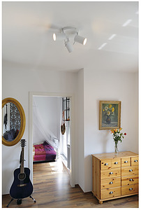 Die ASTO TUBE 3 Wand- und Deckenleuchte ist aus Aluminium gefertigt und wahlweise verfügbar in weißer oder aluminium gebürsteter Lackierung. Der lichtundurchlässige, zylindrische Leuchtenkorpus ist sowohl dreh- als auch schwenkbar und sorgt für blendarmes Licht der zum Einsatz gebrachten GU10 Hochvolt Halogen oder LED Leuchtmittel. ASTO TUBE 3 ist fertig für den direkten Anschluss an 230V Netzspannung.