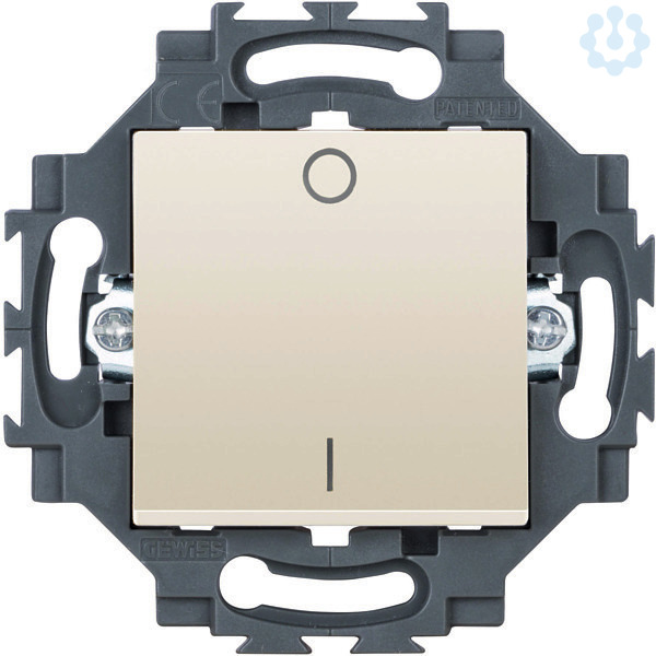 Installationsschalter zur Montage in Geraetedosen mit einer Einbauoeffung von 60mm. Der Tragring ist mit Befestigungskrallen bestueckt und kann aber auch mit Schrauben in einer entsprechenden Geraetedose befestigt werden. Der Anschluss erfolgt mit schraublosen Steckklemmen. Die Wippe gehoert zum Lieferumfang und kann beleuchtet (Zubehoer) werden.