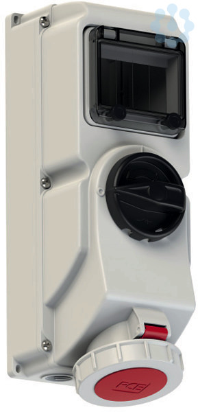 CEE-Steckdose abschaltbar DIN 32A 5p 6h IP66/IP67; Gehäusematerial: PC/ABS; Nennstrom: 32A; Polzahl: 5 (3P+N+PE); Uhrzeit-Stellung: 6h; Nennspannung/Frequenz: 200/346V~ - 240/415V~ / 50+60Hz; Kontakte: Messing vernickelt; Anschlusstechnik: Schraubklemmen; Abschaltbare Wanddose, mechanisch verriegelt, Klappfenster (5 Module), DIN Schiene; Schalter: EIN/AUS PCE-Merz ML0; EN 60947-3; AC22A, 10kA; Leitungseinführung von oben, unten oder hinten (inkl. Blindverschraubung); Schutzart: IP66/IP67