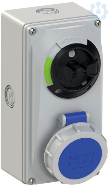 CEE-Steckdose abschaltbar kompakt 16A 3p 6h IP66/IP67 Knock Out; Gehäusematerial: PA6 + PC/ABS; Nennstrom: 16A; Polzahl: 3 (2P+PE); Uhrzeit-Stellung: 6h; Nennspannung/Frequenz: 200-250V~ / 50+60Hz; Kontakte: Messing vernickelt; Anschlusstechnik: Schraubklemmen; Wanddose mit Ausbrüchen, mechanisch verriegelt; Schalter: EIN/AUS PCE-Merz ML0; EN 60947-3; AC22A, 10kA; Schutzart: IP66/IP67
