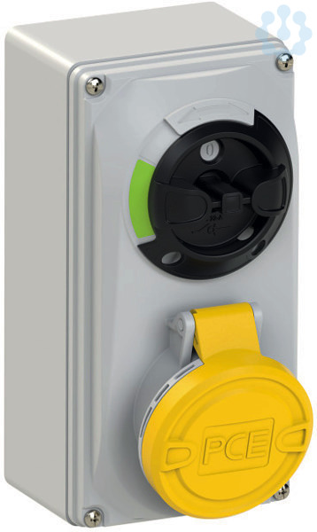CEE-Steckdose abschaltbar kompakt 16A 4p 4h IP44/IP54; Gehäusematerial: PA6 + PC/ABS; Nennstrom: 16A; Polzahl: 4 (3P+PE); Uhrzeit-Stellung: 4h; Nennspannung/Frequenz: 100-130V~ / 50+60Hz; Kontakte: Messing vernickelt; Anschlusstechnik: Schraubklemmen; Wanddose, mechanisch verriegelt; Schalter: EIN/AUS PCE-Merz ML0; EN 60947-3; AC22A, 10kA; Schutzart: IP44/IP54