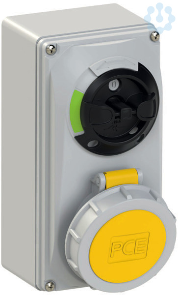 CEE-Steckdose abschaltbar kompakt 16A 4p 4h IP66/IP67; Gehäusematerial: PA6 + PC/ABS; Nennstrom: 16A; Polzahl: 4 (3P+PE); Uhrzeit-Stellung: 4h; Nennspannung/Frequenz: 100-130V~ / 50+60Hz; Kontakte: Messing vernickelt; Anschlusstechnik: Schraubklemmen; Wanddose, mechanisch verriegelt; Schalter: EIN/AUS PCE-Merz ML0; EN 60947-3; AC22A, 10kA; Schutzart: IP66/IP67