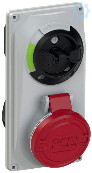 CEE-Steckdose abschaltbar kompakt 16A 4p 6h IP44/IP54; Gehäusematerial: PA6; Nennstrom: 16A; Polzahl: 4 (3P+PE); Uhrzeit-Stellung: 6h; Nennspannung/Frequenz: 380-415V~ / 50+60Hz; Kontakte: Messing vernickelt; Anschlusstechnik: Schraubklemmen; Anbauversion, mechanisch verriegelt; Schalter: EIN/AUS PCE-Merz ML0; EN 60947-3; AC22A, 10kA; Schutzart: IP44/IP54