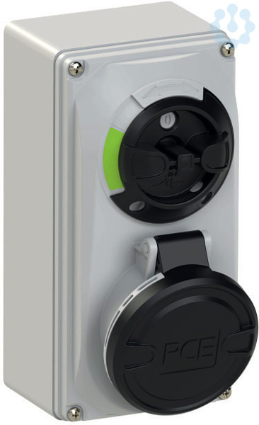 CEE-Steckdose abschaltbar kompakt 16A 5p 7h IP44/IP54; Gehäusematerial: PA6 + PC/ABS; Nennstrom: 16A; Polzahl: 5 (3P+N+PE); Uhrzeit-Stellung: 7h; Nennspannung/Frequenz: 277/480V~ - 288/500V~ / 50+60Hz; Kontakte: Messing vernickelt; Anschlusstechnik: Schraubklemmen; Wanddose, mechanisch verriegelt; Schalter: EIN/AUS PCE-Merz ML0; EN 60947-3; AC22A, 10kA; Schutzart: IP44/IP54