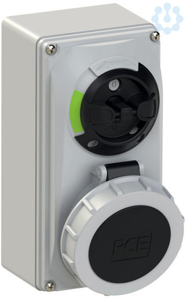 CEE-Steckdose abschaltbar kompakt 16A 5p 7h IP66/IP67; Gehäusematerial: PA6 + PC/ABS; Nennstrom: 16A; Polzahl: 5 (3P+N+PE); Uhrzeit-Stellung: 7h; Nennspannung/Frequenz: 277/480V~ - 288/500V~ / 50+60Hz; Kontakte: Messing vernickelt; Anschlusstechnik: Schraubklemmen; Wanddose, mechanisch verriegelt; Schalter: EIN/AUS PCE-Merz ML0; EN 60947-3; AC22A, 10kA; Schutzart: IP66/IP67