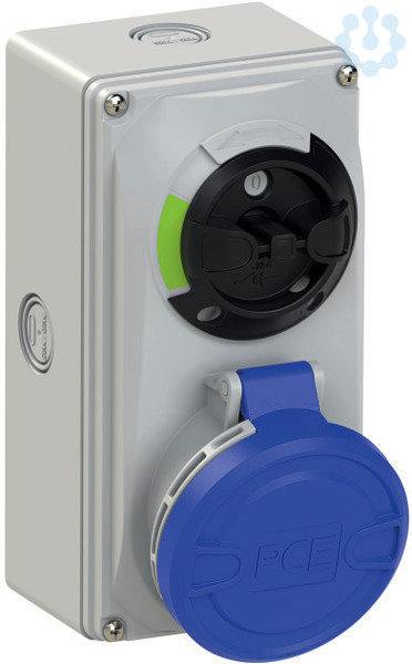 CEE-Steckdose abschaltbar kompakt 32A 3p 6h IP44/IP54 Knock Out; Gehäusematerial: PA6 + PC/ABS; Nennstrom: 32A; Polzahl: 3 (2P+PE); Uhrzeit-Stellung: 6h; Nennspannung/Frequenz: 200-250V~ / 50+60Hz; Kontakte: Messing vernickelt; Anschlusstechnik: Schraubklemmen; Wanddose mit Ausbrüchen, mechanisch verriegelt; Schalter: EIN/AUS PCE-Merz ML0; EN 60947-3; AC22A, 10kA; Schutzart: IP44/IP54