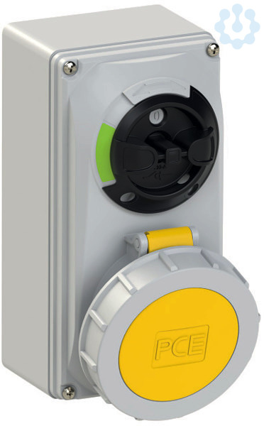 CEE-Steckdose abschaltbar kompakt 32A 4p 4h IP66/IP67; Gehäusematerial: PA6 + PC/ABS; Nennstrom: 32A; Polzahl: 4 (3P+PE); Uhrzeit-Stellung: 4h; Nennspannung/Frequenz: 100-130V~ / 50+60Hz; Kontakte: Messing vernickelt; Anschlusstechnik: Schraubklemmen; Wanddose, mechanisch verriegelt; Schalter: EIN/AUS PCE-Merz ML0; EN 60947-3; AC22A, 10kA; Schutzart: IP66/IP67