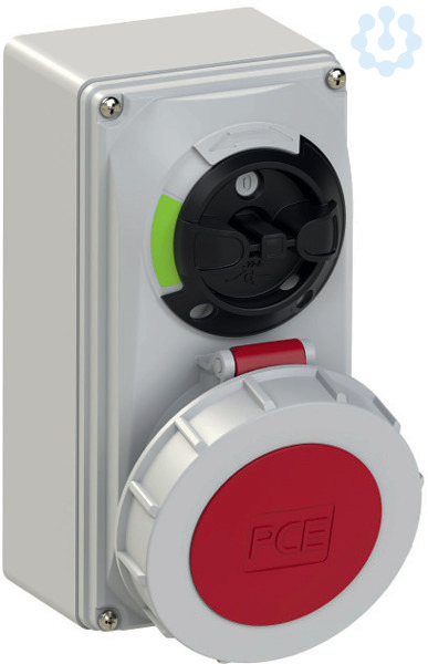 CEE-Steckdose abschaltbar kompakt 32A 5p 6h IP66/IP67; Gehäusematerial: PA6 + PC/ABS; Nennstrom: 32A; Polzahl: 5 (3P+N+PE); Uhrzeit-Stellung: 6h; Nennspannung/Frequenz: 200/346V~ - 240/415V~ / 50+60Hz; Kontakte: Messing vernickelt; Anschlusstechnik: Schraubklemmen; Wanddose, mechanisch verriegelt; Schalter: EIN/AUS PCE-Merz ML0; EN 60947-3; AC22A, 10kA; Schutzart: IP66/IP67